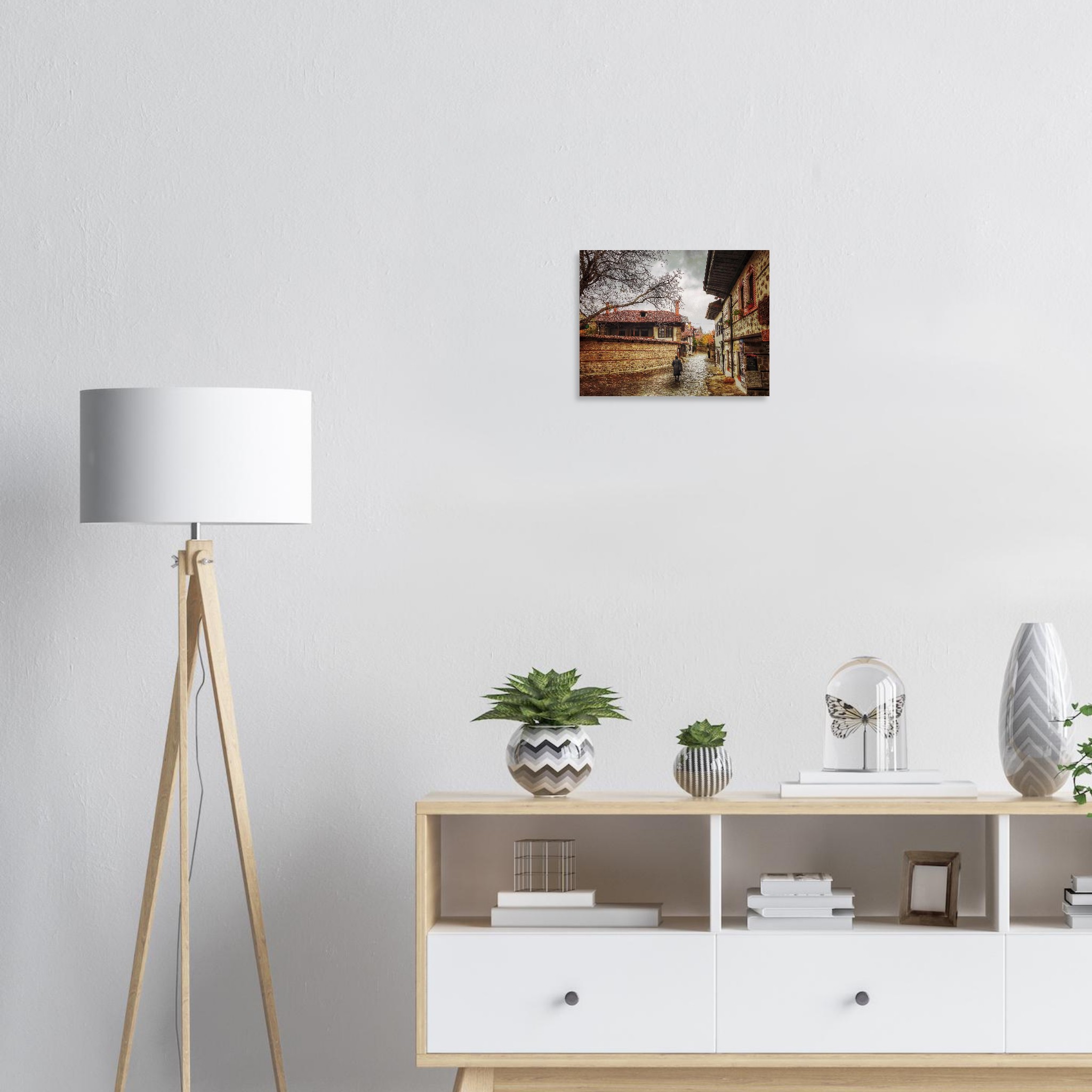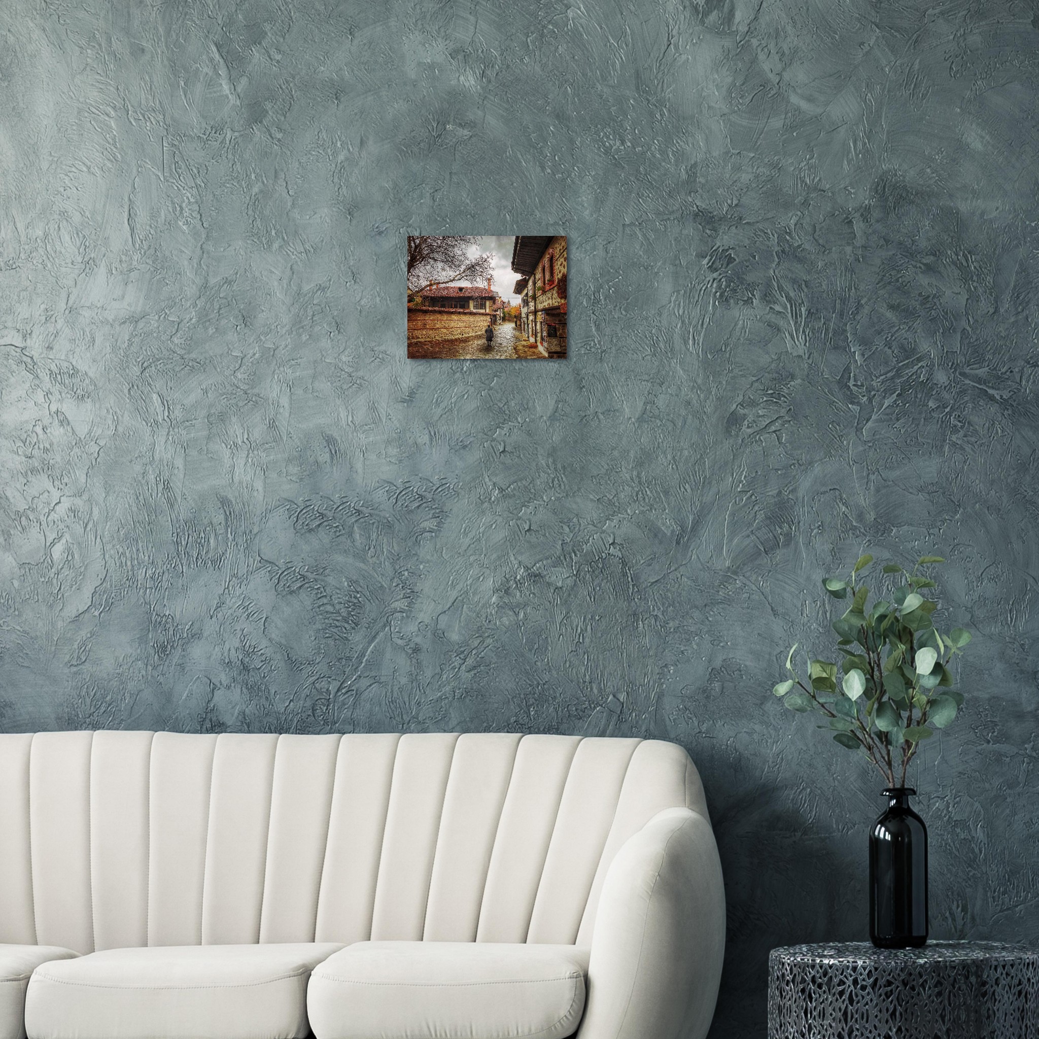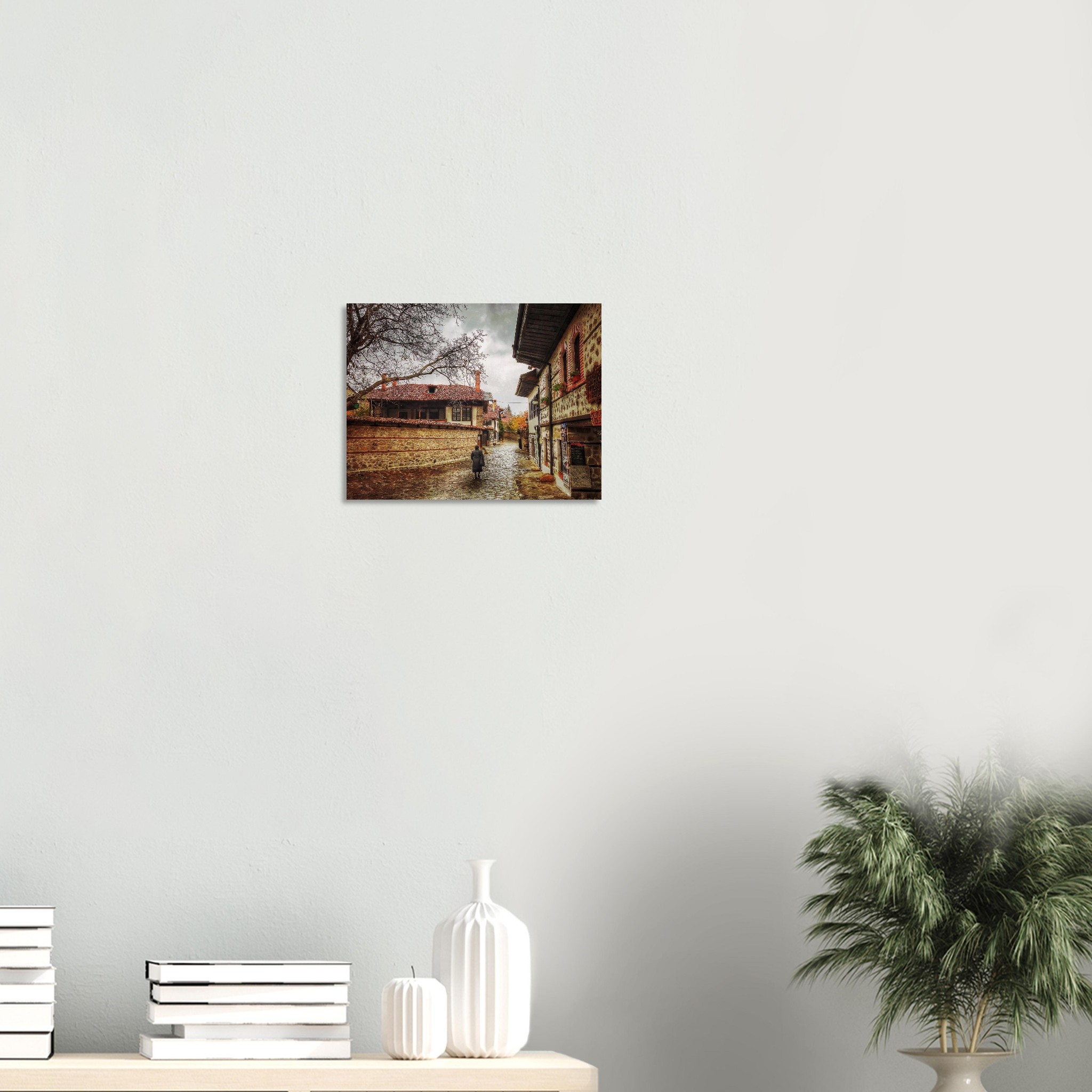 Step into a scene of timeless charm with this captivating image of a historic Bulgarian alleyway. Evoking a sense of quiet wonder and old-world beauty, this premium matte paper poster captures the essence of a tranquil moment in a European town, complete with cobblestones and rustic architecture under a soft, cloudy sky.