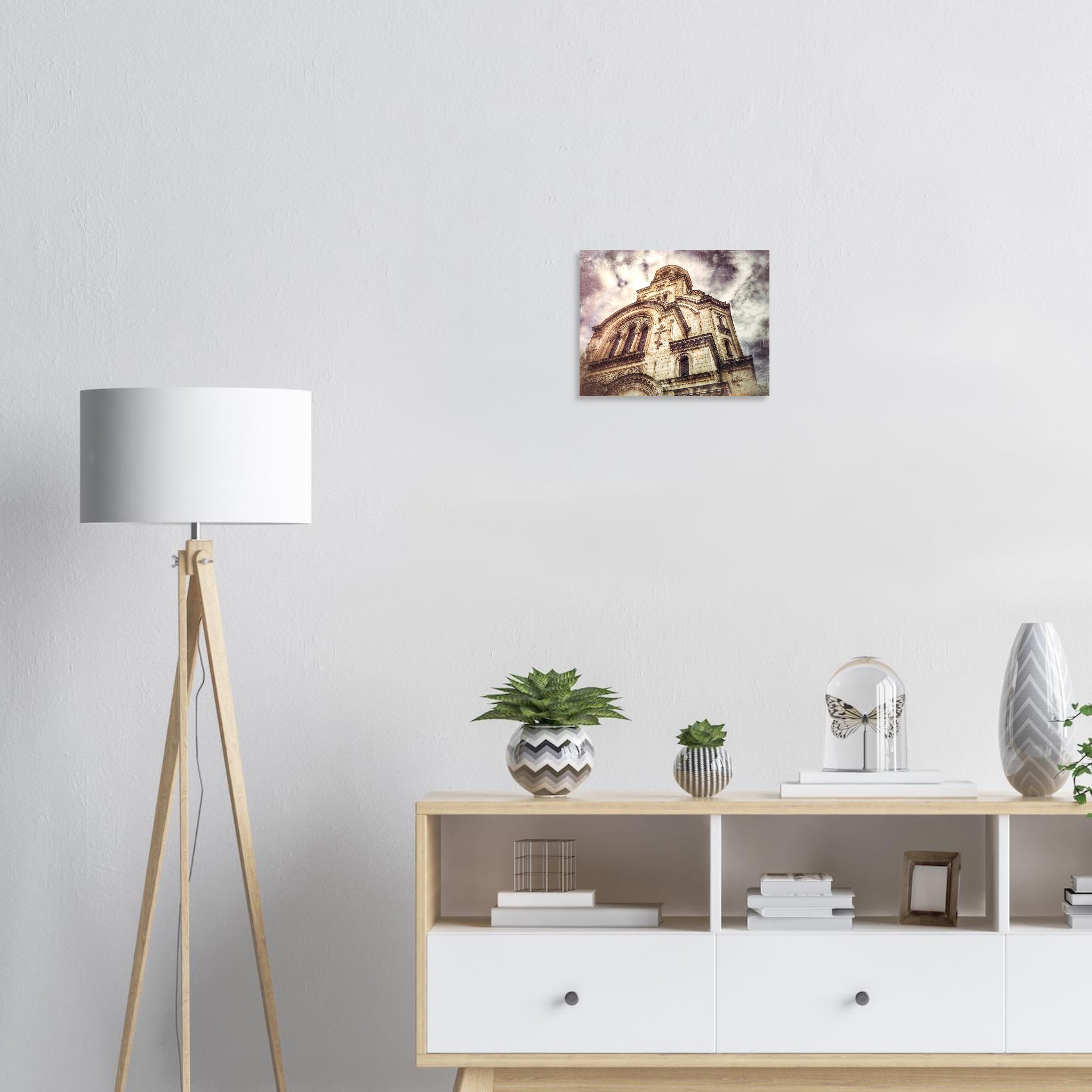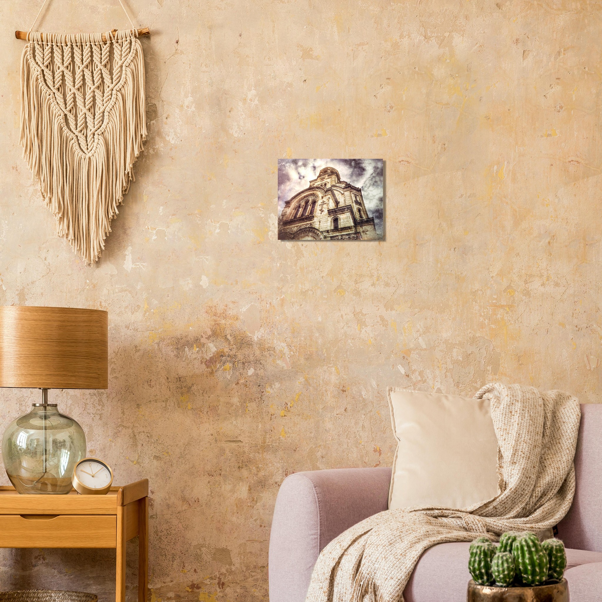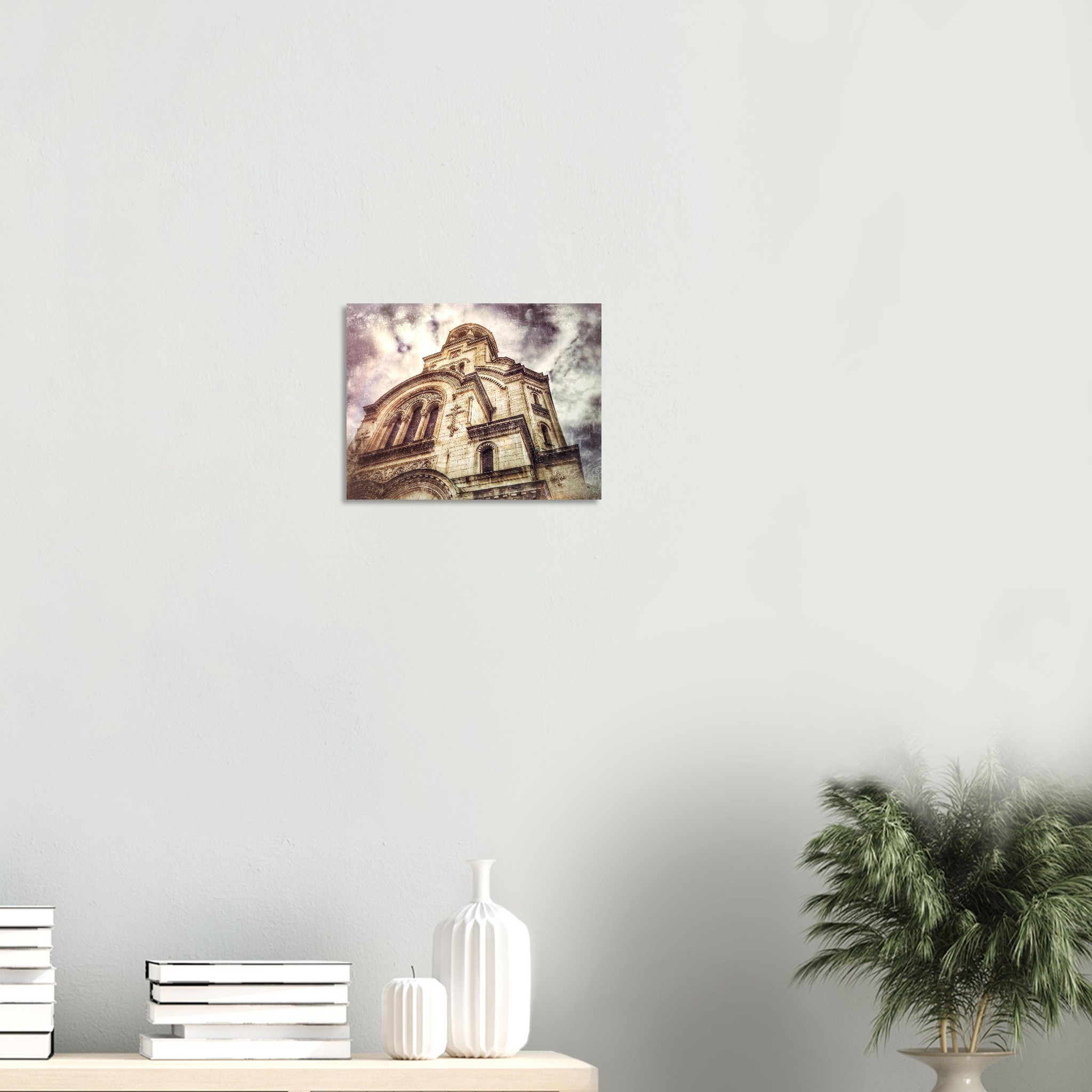 Capture the timeless elegance of Bulgaria’s architectural heritage with this stunning premium matte poster. This artwork beautifully presents a grand cathedral, its intricate details and weathered charm brought to life against a dramatic, textured sky. The sepia tones and vintage-inspired finish evoke a sense of history and profound beauty, making it a perfect statement piece for any space.