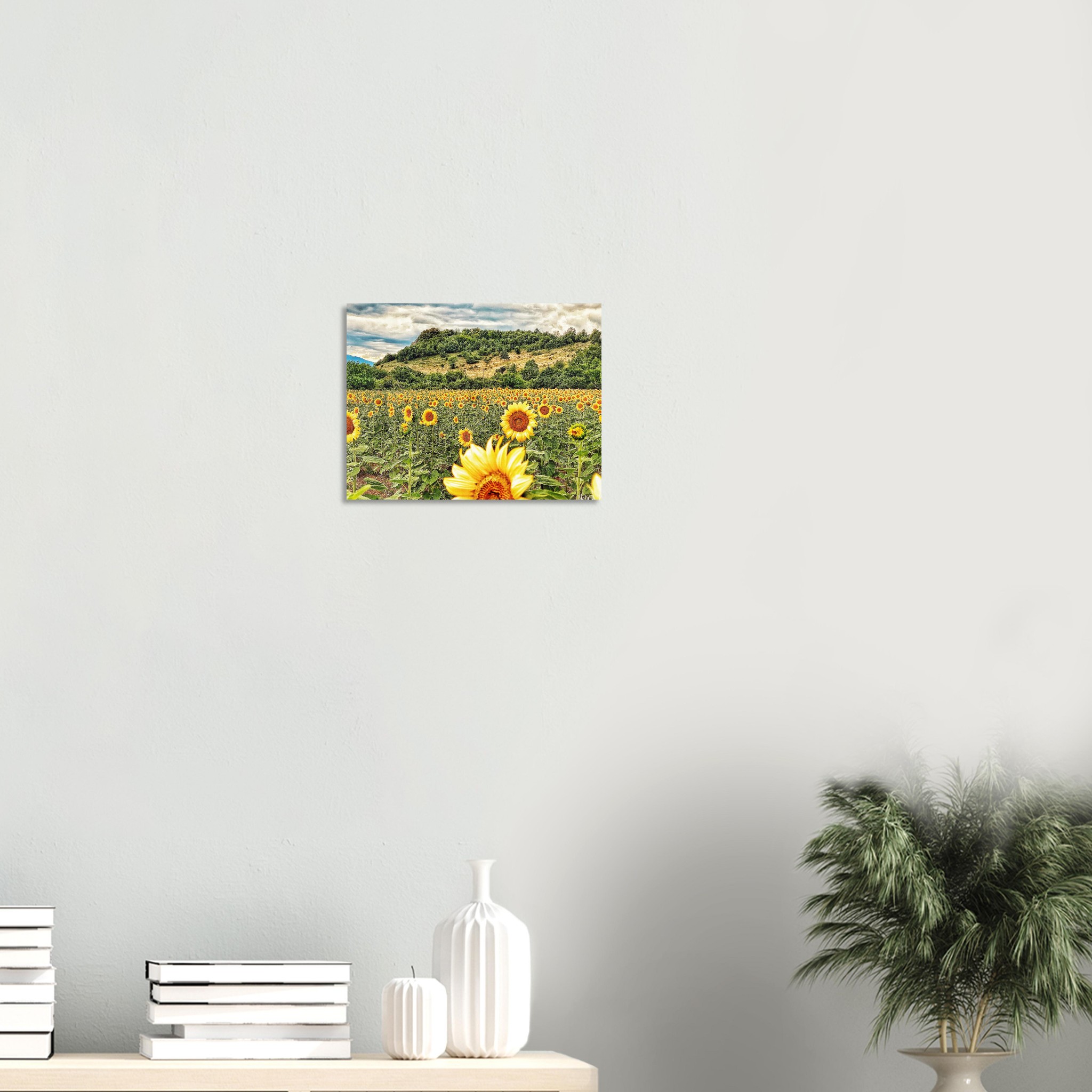 No minimum orders, printed and shipped on demand. Elevate your decor with this stunning sunflower poster and let the sunshine in—select your preferred size and order yours today!