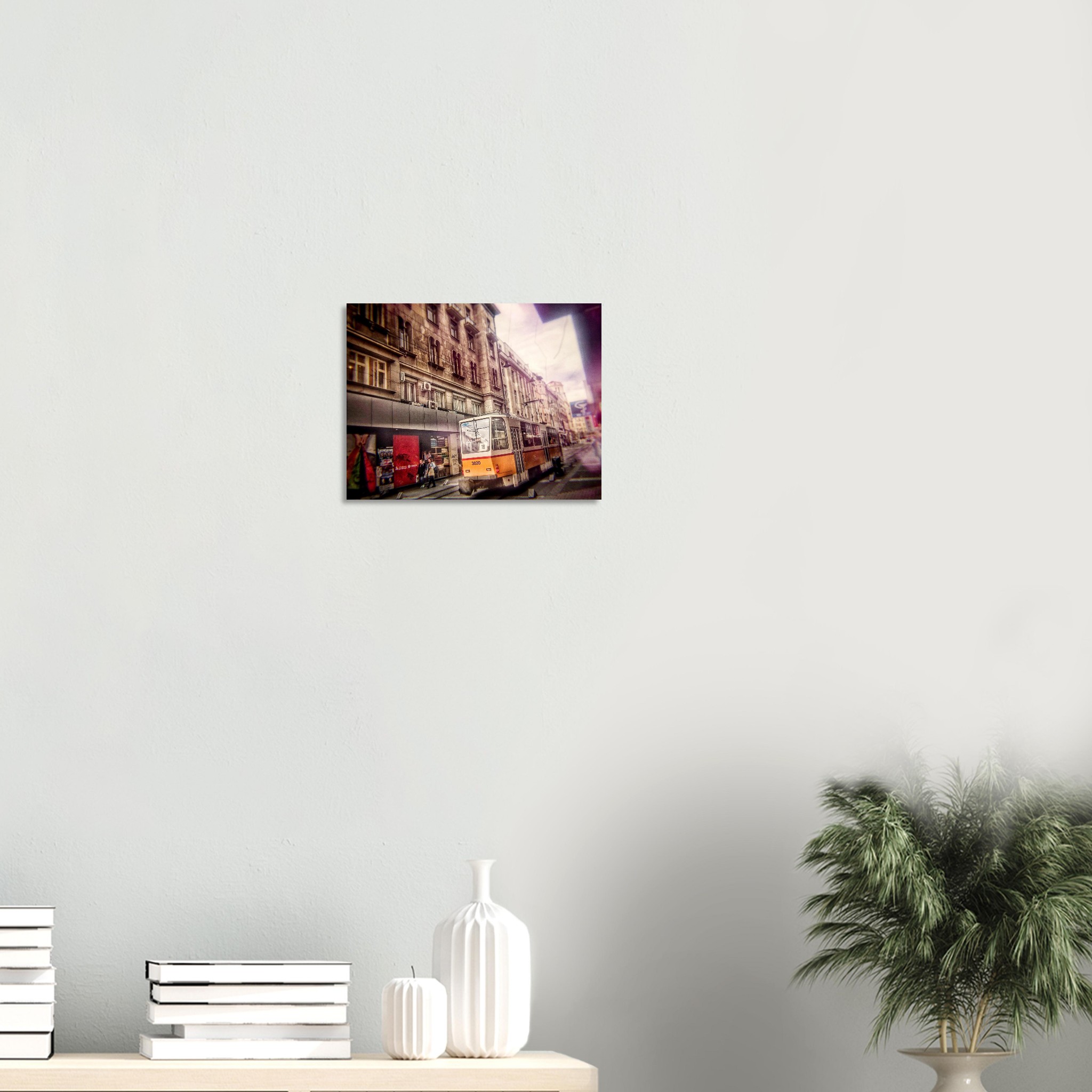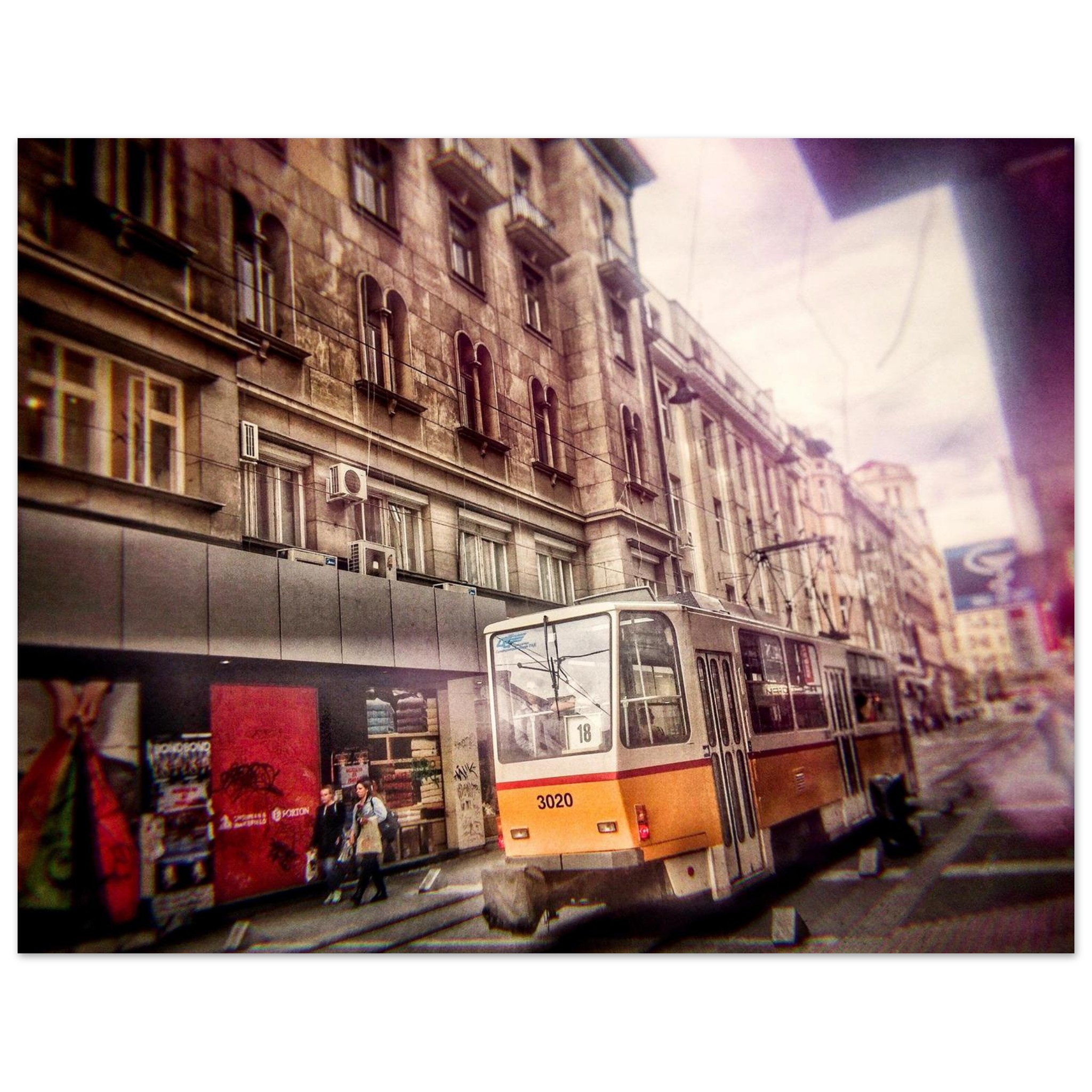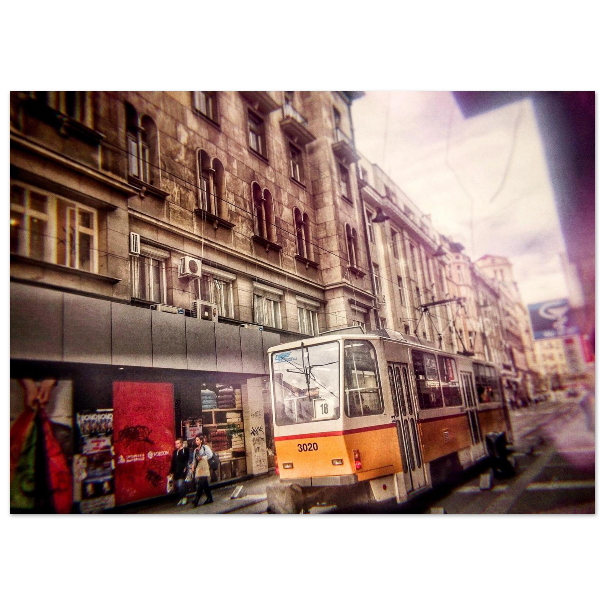 Transport yourself to the charming streets of Bulgaria with this evocative poster, capturing a classic tram passing through the historic Danube River town of Lom. The image’s vintage aesthetic, with its slightly faded colors and dreamlike focus, adds a nostalgic touch perfect for any space. It’s more than just a picture; it’s a window to a moment, a memory, or a dream of European adventure.
