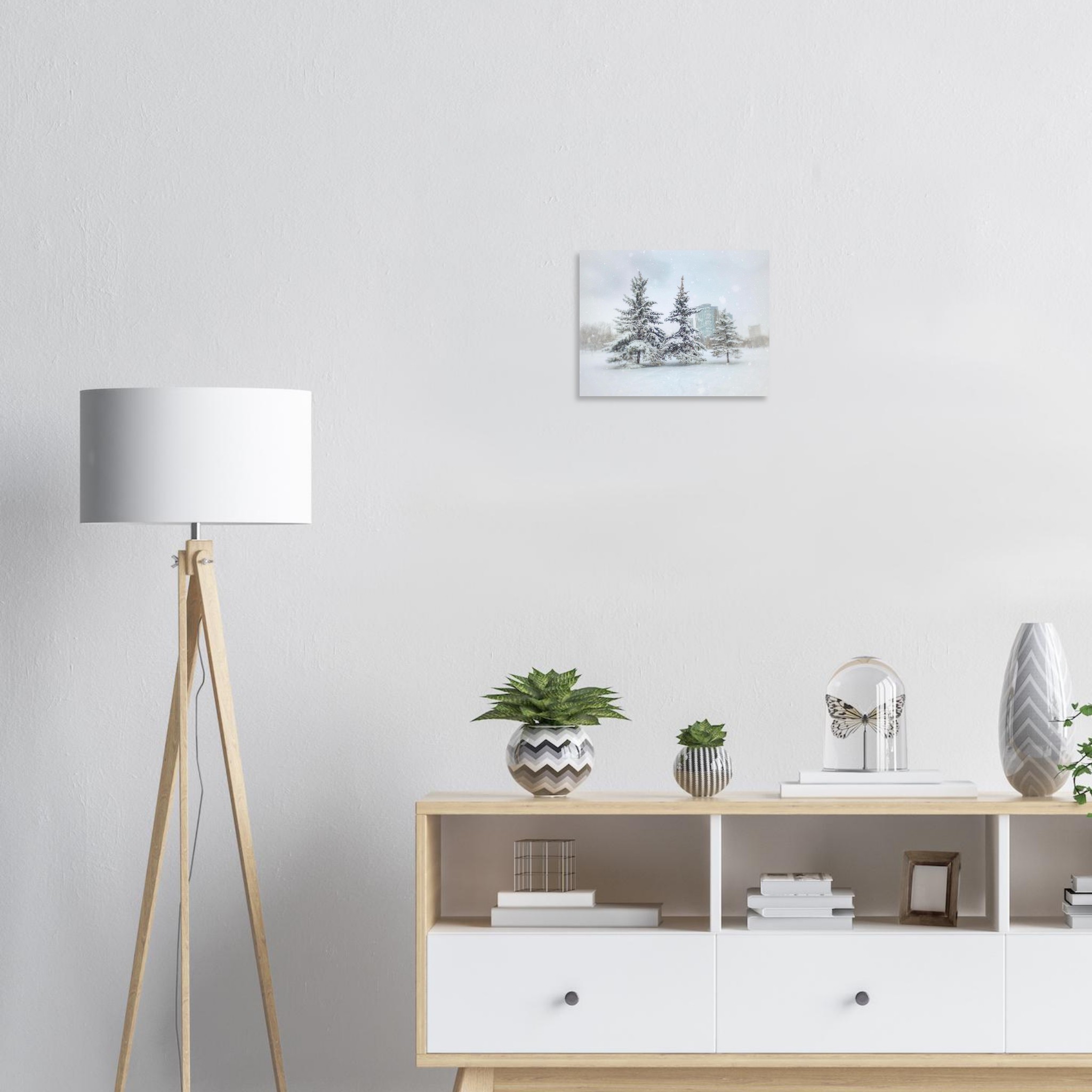 No minimum orders, printed and shipped on demand. Choose your perfect size and bring the serene beauty of winter indoors today!